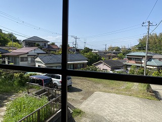 周囲には、大きな建物がなく、広々としています。特に玄関前は駐車場になっていますので、本当に開放感満載です。建物の奥や右手には山があって、そこから爽やかな風が吹き込んでくるような感じがします。
