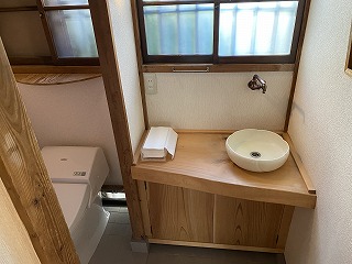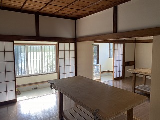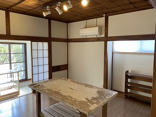 2階建て古民家の1階部分の物件です。建物のいたるところ、使っている木材から照明に至るまで、古民家の佇まいを感じることができて、落ち着いた雰囲気の住宅です。