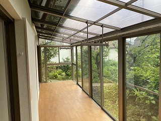 1階には広~い、サンルームがあります。これだけの広さのサンルームをどう生かすか・・雨の降った日などはとても重宝しますね。特に梅雨の時期は洗濯物でお部屋が乾燥しがちですが、これだけの広さのサンルームがあれば居住空間が湿気っぽくならないですね。