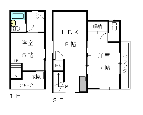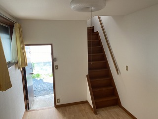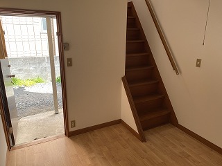 ちょっと変わった間取りになっています。1階が1部屋、2階にDKと洋室があります。1階のお部屋はあまり日当りがよくないので、生活の中心は2階になると思います。