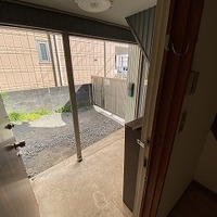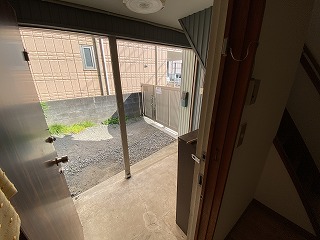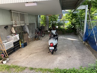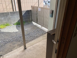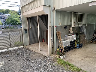 玄関脇にスペースがありますが、こちらは共用スペースになっていまして、裏のアパートの方の自転車などが置いてあります。