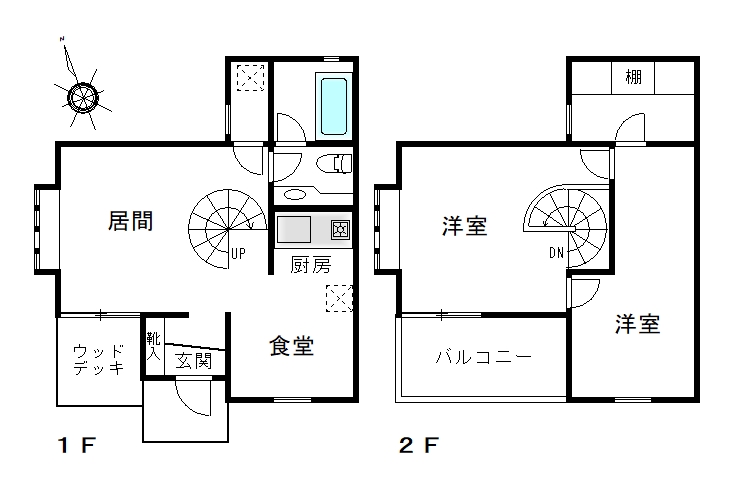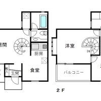 バス・トイレ別、追炊き機能付き、シャワー、室内洗濯機置き場、給湯、システムキッチン、都市ガス、角部屋、収納スペース、ベランダ(2階)、ウッドデッキ(1階)、フローリング、エアコン(新設)、CATV