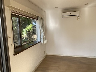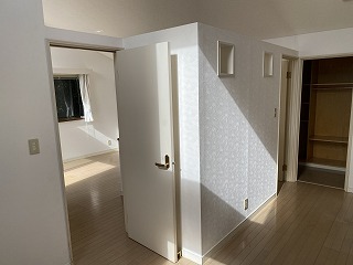 洋室は2つあるのですが、完全に天井まで壁があるわけではなく、パーテションで仕切られているといった感じで、壁の上部が空いているので、2部屋とも明るく開放感に満ちた空間になっています。
