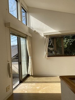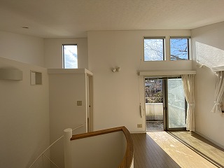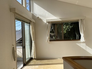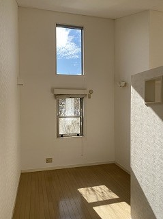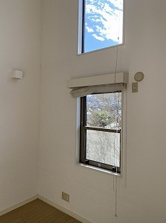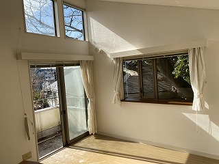 しかも、この2つの部屋とも天井の高さが尋常でないくらい高くて気持ちがいいのです。そして、南側の壁に上下に2つの窓があることによって、さらに明るい空間となっております。