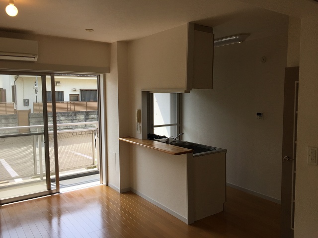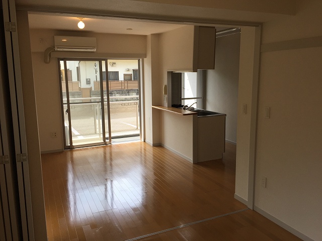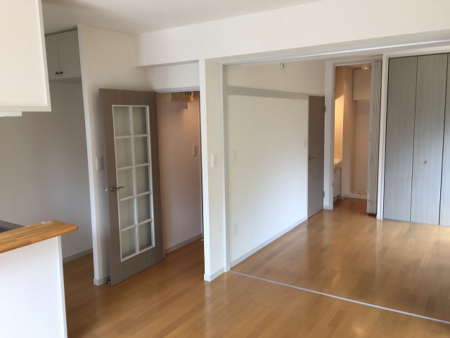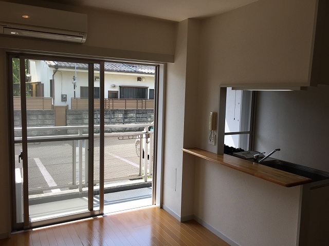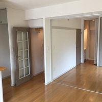 1階なのですが、南東の角部屋ですので日当たりはいいです!しかも前面に棟が建っていないので風の通りもよくて気持ちのいいお部屋です。1LDKの間取りですが、間仕切りのドアが付いていますので広々とした1kとしてもご利用いただけます。