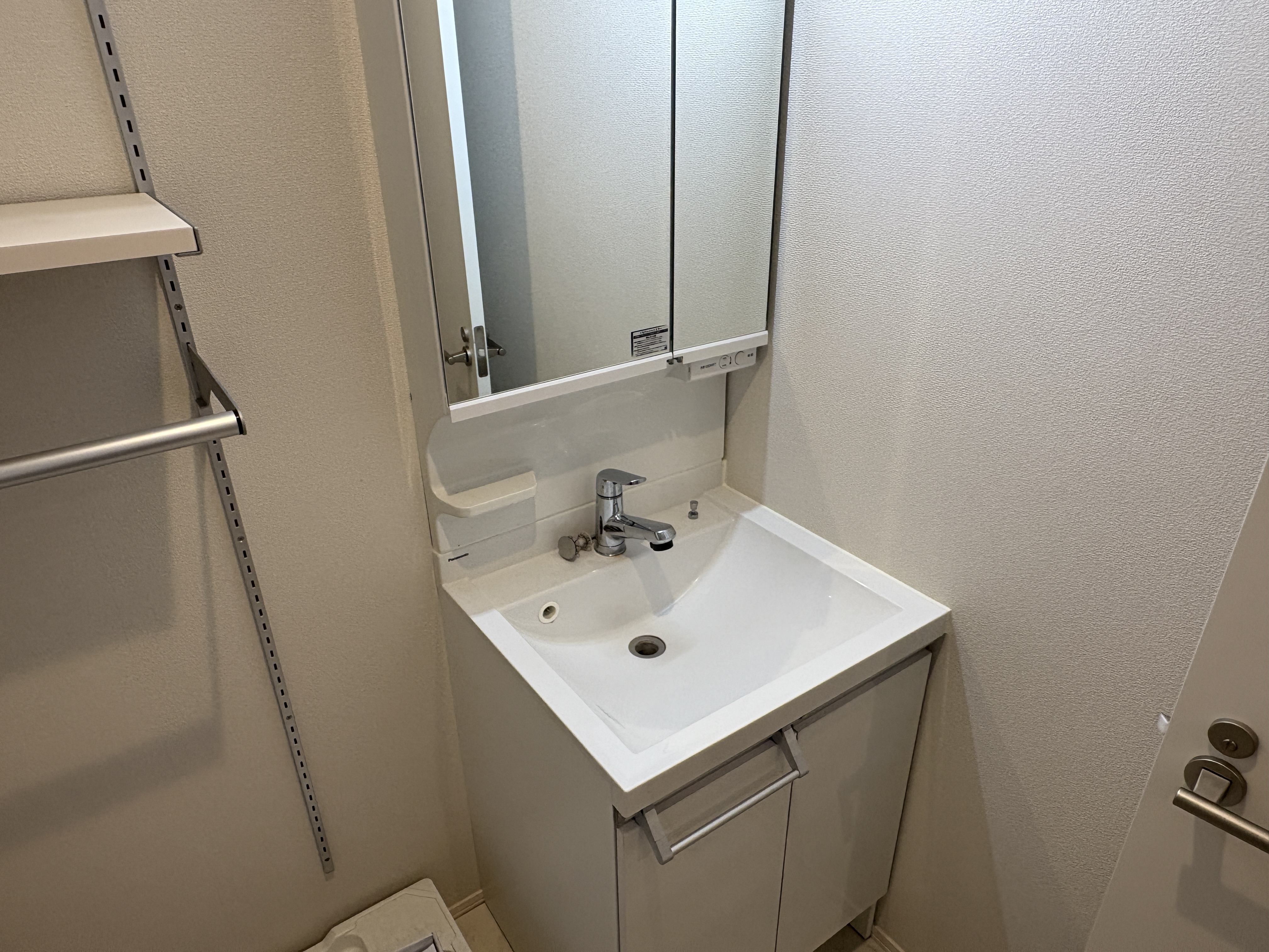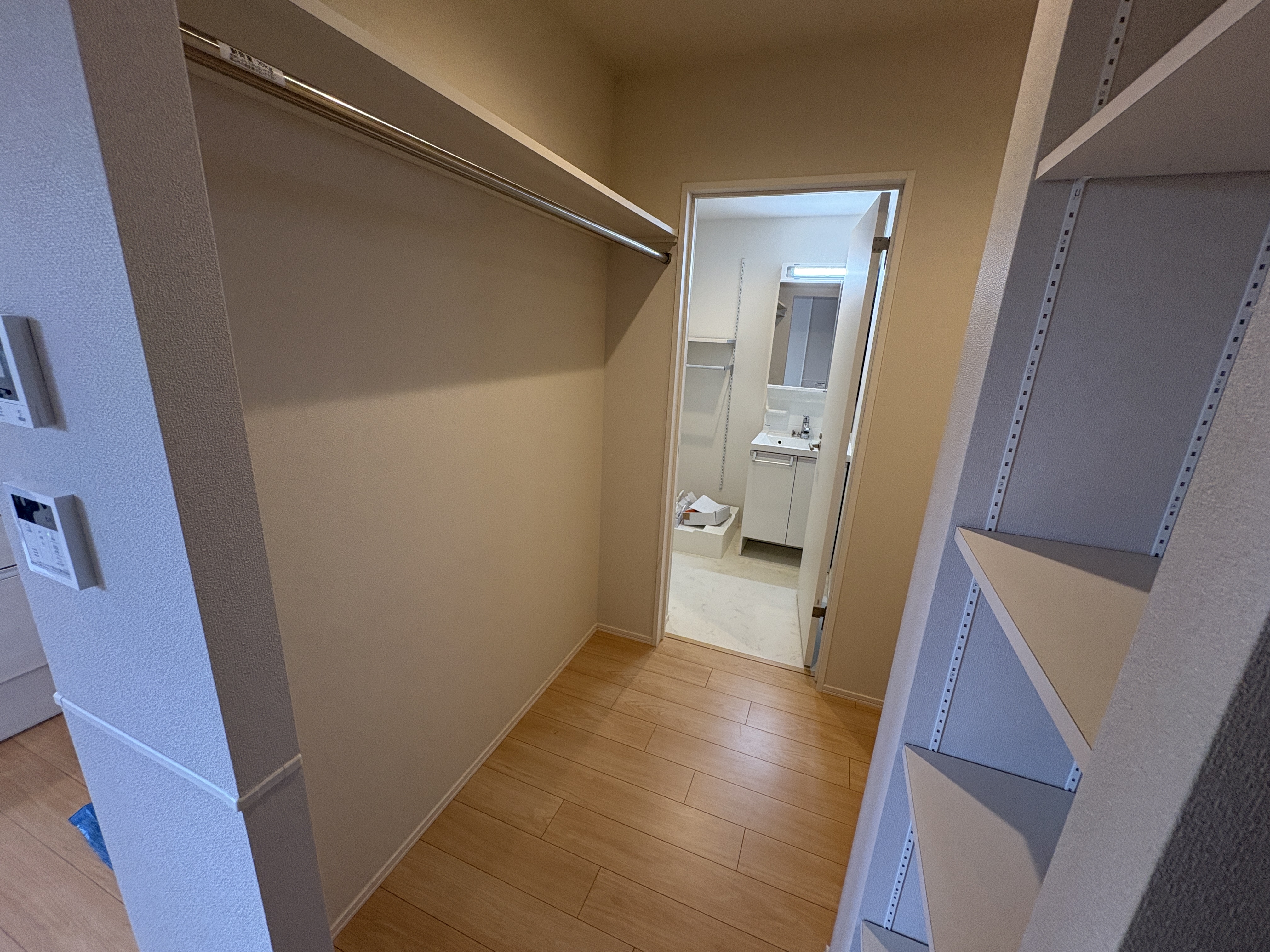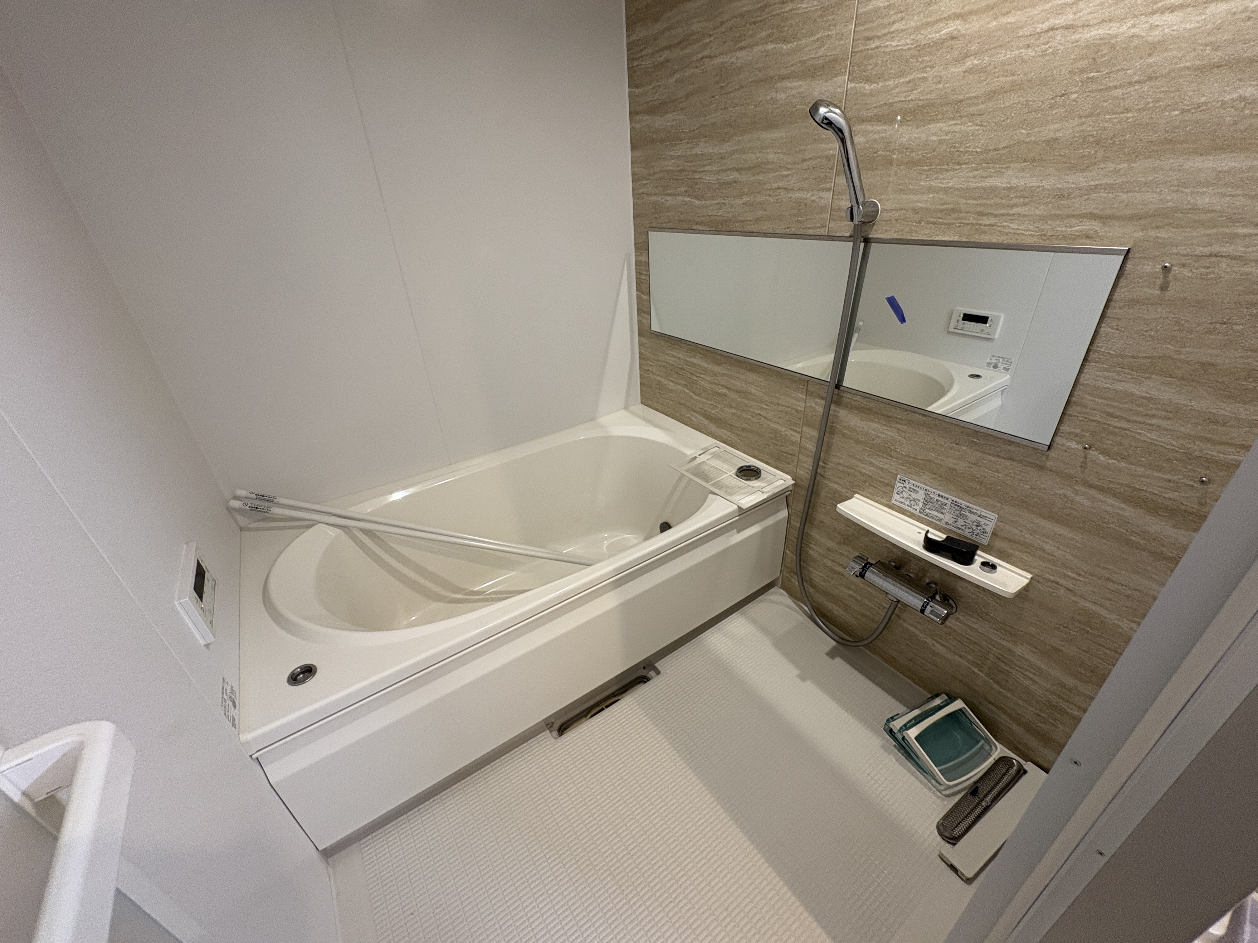 設備面も新築ならではの充実ぶりです。対面式カウンターキッチンには3口コンロ+グリルが付いており、本格的な料理を楽しみたい方に嬉しい仕様。お風呂は追い焚き機能付きでいつでもぽかぽか、浴室乾燥機も完備しているので雨の日の洗濯も安心です。独立洗面台や温水洗浄便座など水回りの設備も充実しています。エアコンはリビング等に計2台設置済みで、夏も冬も快適に過ごせます。さらにインターネット使用料無料なので、入居後すぐにテレワーク環境が整うのも嬉しいポイントです。
