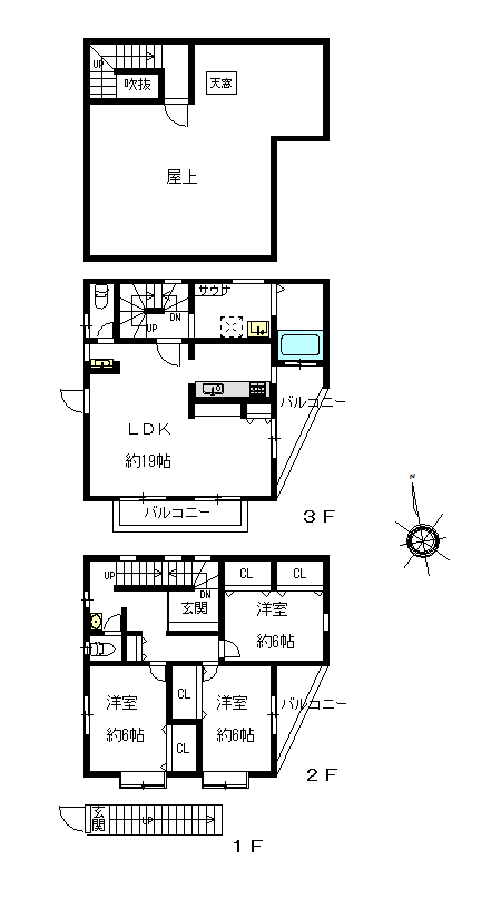 本物件は3階建ての2・3階部分です。そして、ルーフバルコニーからは360°の眺望を楽しむことが出来ます。玄関はこの家の専用になっていますので、プライバシーは保たれています。