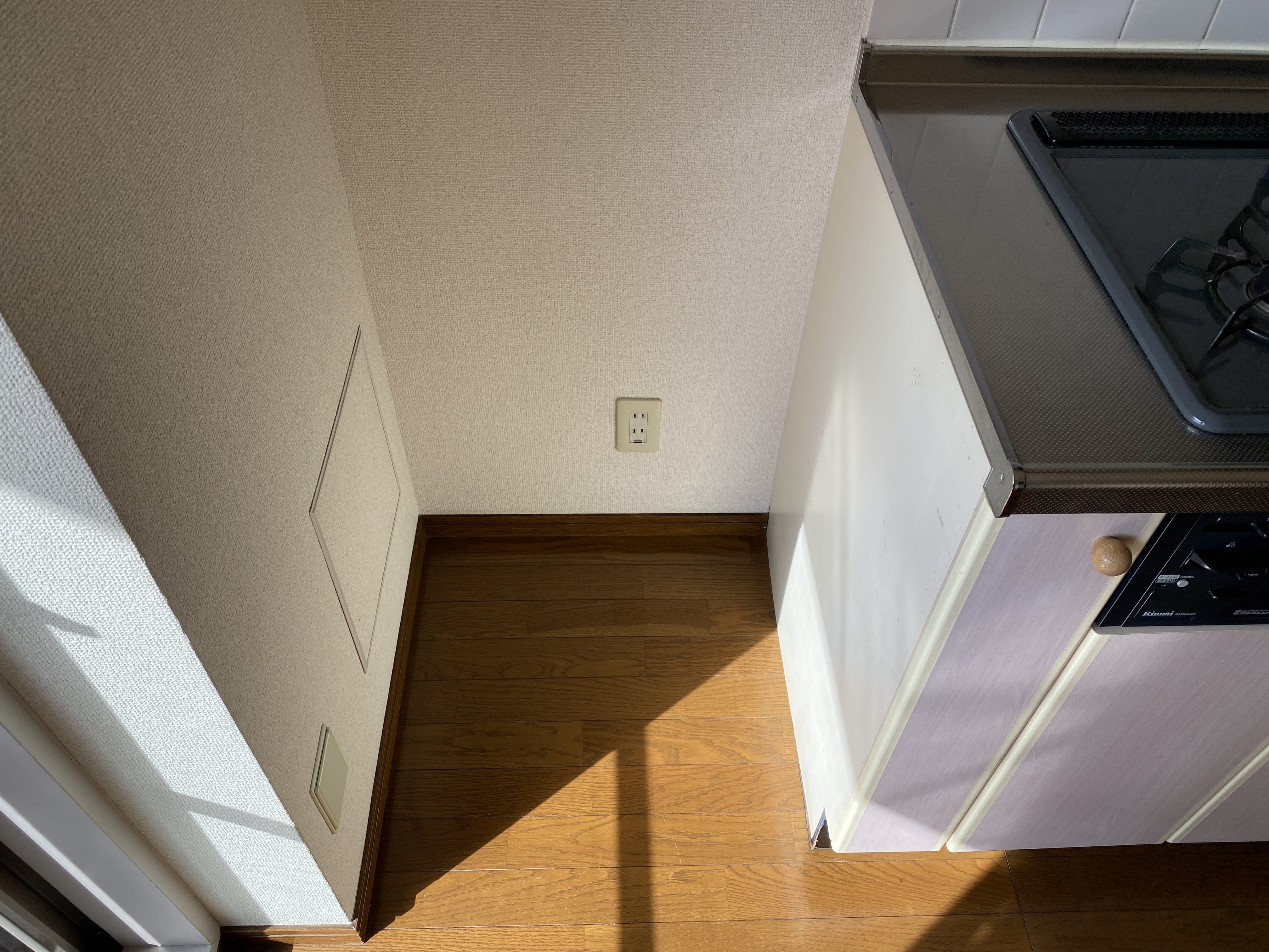 上の写真を見ての通り、冷蔵庫置き場が狭いです。