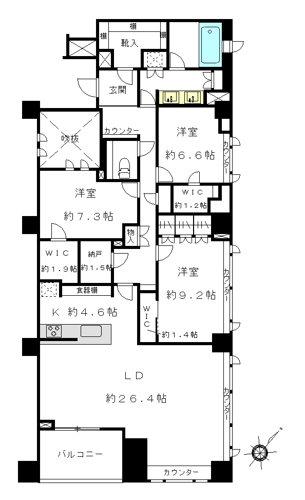 ミストサウナ、バス・トイレ別、浴室乾燥機、追焚機能、洗面台、シャワー、温水洗浄便座、トイレ、システムキッチン、食器洗浄乾燥機、浄水器、ディスポーザー、3口以上コンロ、ガスコンロ付、モニター付オートロック、ウォークインクローゼット、収納スペース、室内洗濯機置場、シューズインクローゼット、クローゼット、モニター付インターホン、防犯カメラ、給湯、フローリング、バルコニー、火災警報器(報知機)、インターネット対応、光ファイバー、ケーブルTV、CS、BS端子、宅配BOX、エレベーター