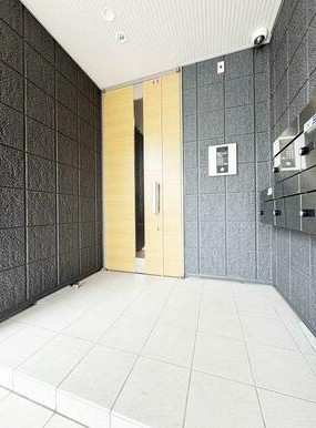 モニター付のインターホンがついているので、来訪者の顔を見てから、玄関を開けるかどうかを判断することができますね。不審な訪問者や迷惑でしつこい勧誘などはモニター付きインターホンで安心です。また、オートロックも付いております。このアパートが通りに面しているため、防犯面は安心です。