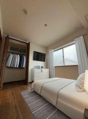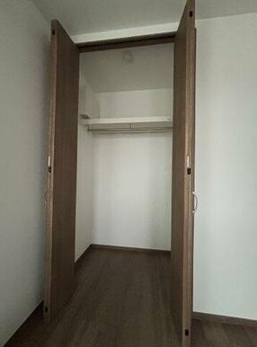 角部屋に位置するお部屋です。窓からは朝日のやわらかな陽ざしが差し込みます。昼過ぎに物件を確認したのですが、正直少し暗い印象を持ちました。ただ、室内は清潔感のある白を基調としたデザインですので、落ち着いた雰囲気ではあります。