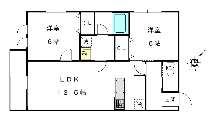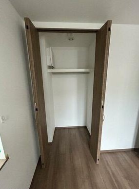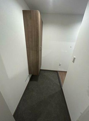 角部屋に位置するお部屋です。窓からは朝日のやわらかな陽ざしが差し込みます。昼過ぎに物件を確認したのですが、正直少し暗い印象を持ちました。ただ、室内は清潔感のある白を基調としたデザインですので、落ち着いた雰囲気ではあります。