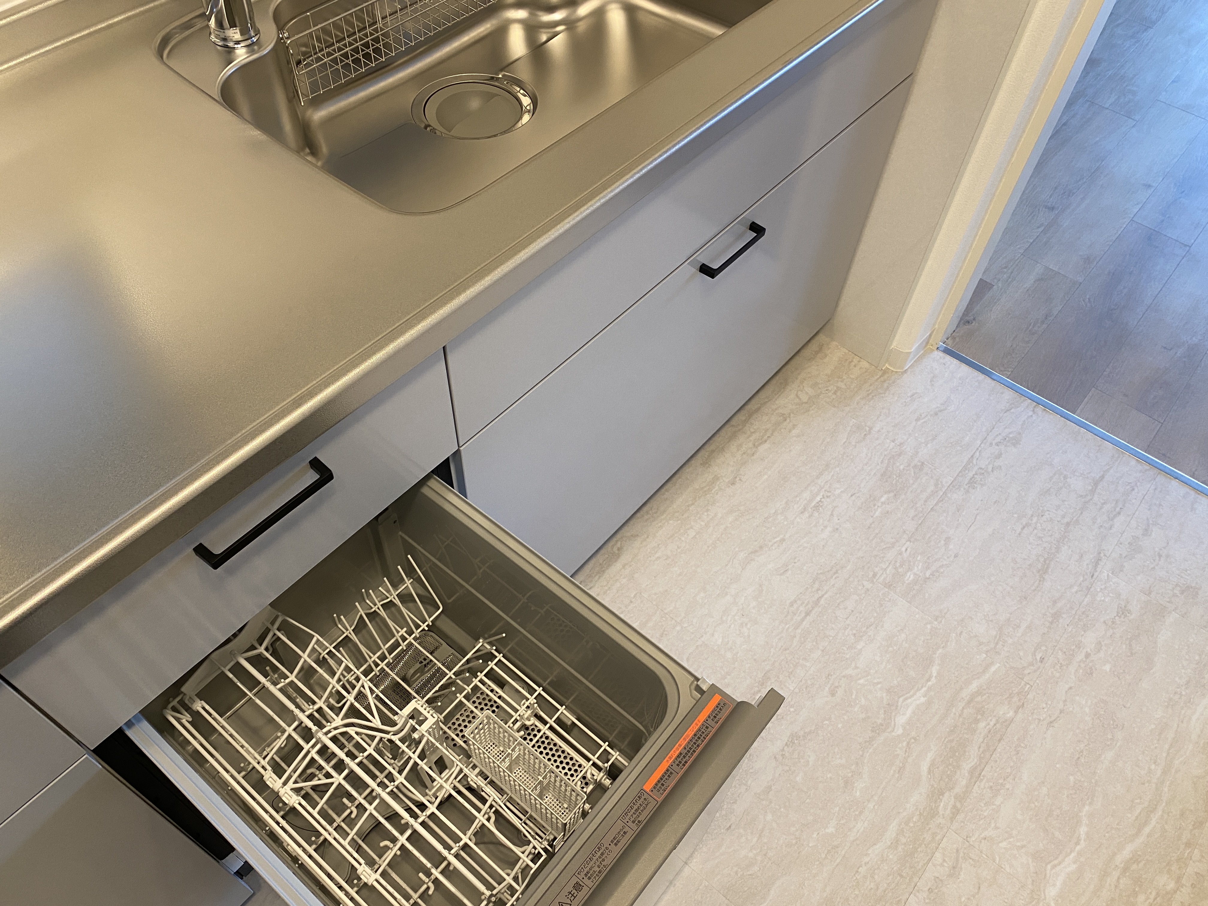 ・システムキッチンを交換(浄水器内蔵水栓・食洗器付き)床張替え