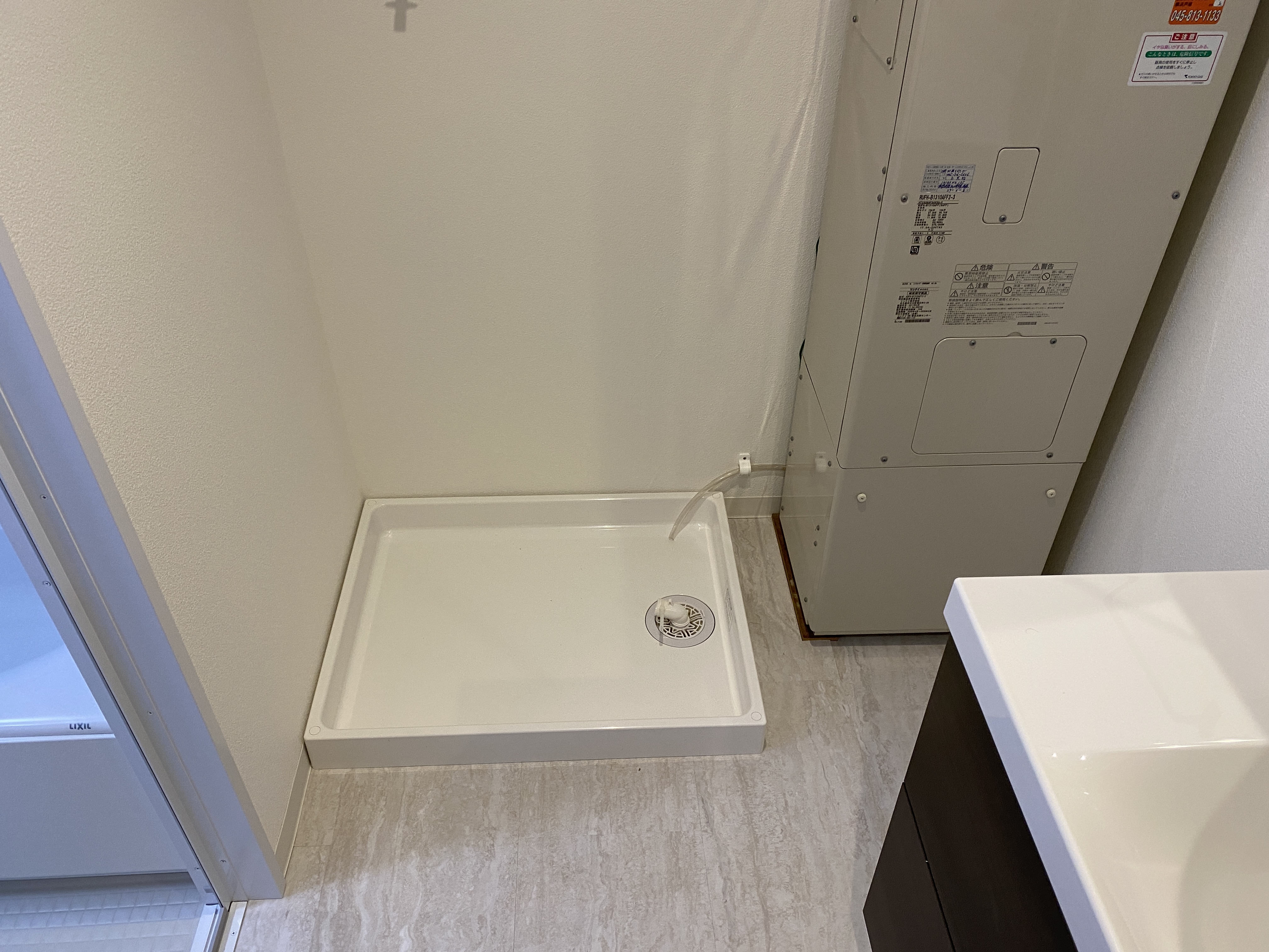 ・洗濯機置き場の防水パン交換、選択水栓交換