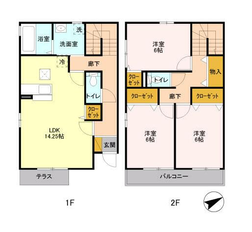 バス・トイレ別、浴室乾燥機、追焚機能、洗面所独立、シャワー、温水洗浄便座、トイレ2ヶ所、トイレ、カウンターキッチン、2口コンロ、ガスコンロ付、モニター付インターホン、シャッター雨戸、収納スペース、クローゼット、シューズボックス、室内洗濯機置場、フローリング、室内物干し、都市ガス、エアコン、インターネット対応、インターネット使用料無料、バルコニー、テラス