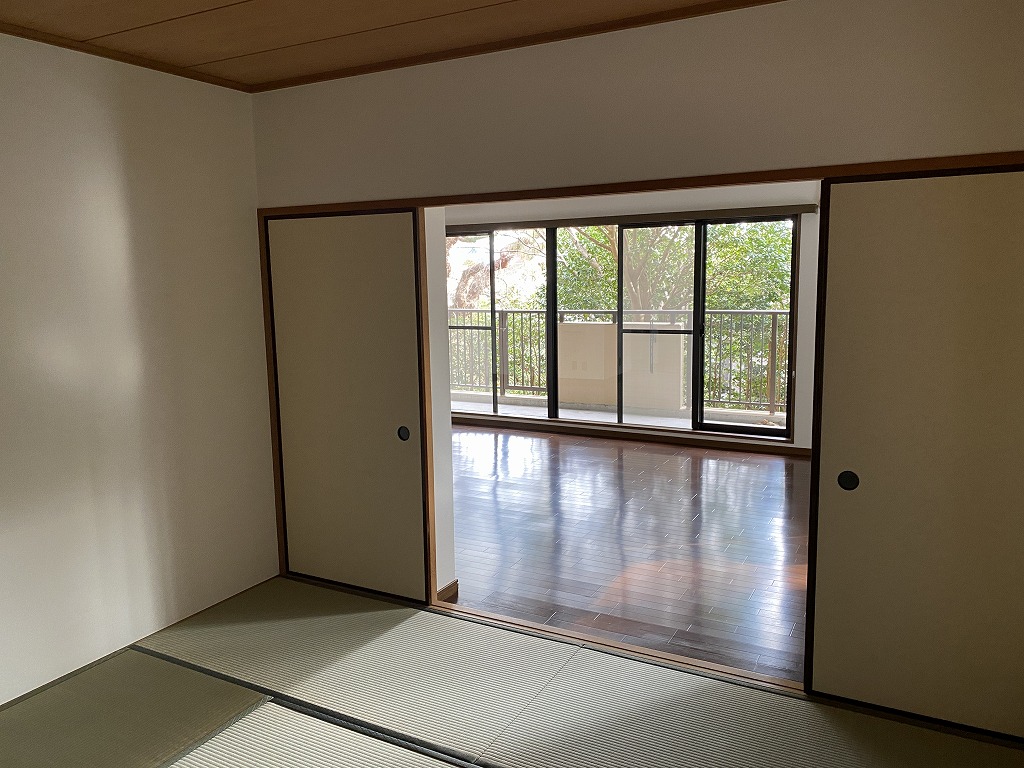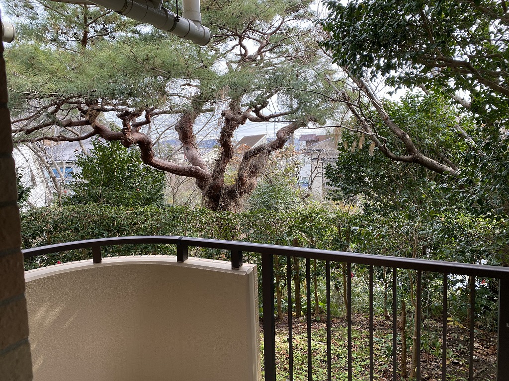 南向きのバルコニーは広くて開放感があります。各お部屋のバルコニーが直線状に並んでいなくて、お隣のバルコニーからの視線も気にならないような構造になっています。開放感があるバルコニーで、のんびり寛ぐのはいかがですか?落ち着いた雰囲気のあるお庭を眺めると心が和んできます