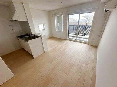 3階建ての最上階で、しかも南向きのリビングです。周囲に視界を遮るような建物もないので、明るく開放的です。