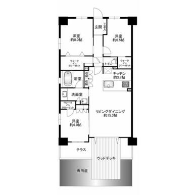 バス・トイレ別 追焚機能 洗面所独立 温水洗浄便座 カウンターキッチン ガスコンロ付 オートロック 収納スペース シューズボックス 室内洗濯機置場 全居室フローリング フローリング 庭 ウッドデッキ