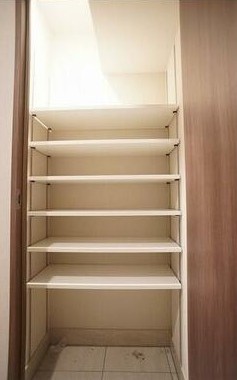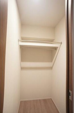 玄関わきにウォークインクロゼットがあります。外出先から帰ってきて、すぐにコートをかけられますね。スペースもゆったりしているので、収納力もあります。