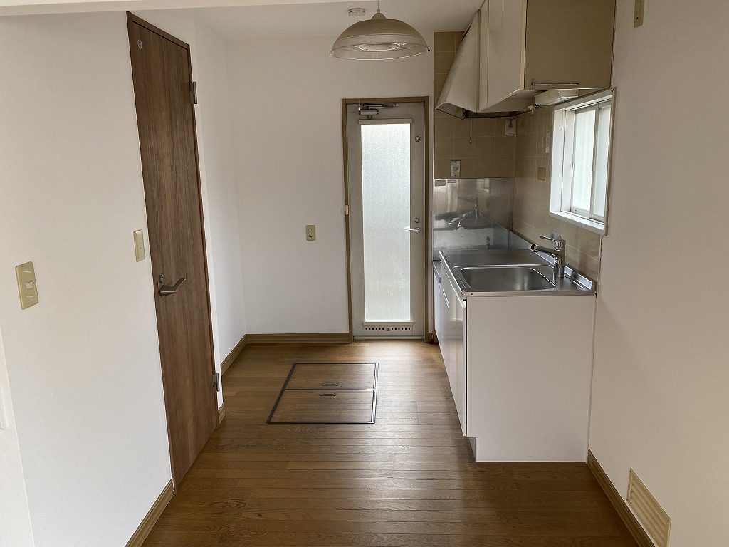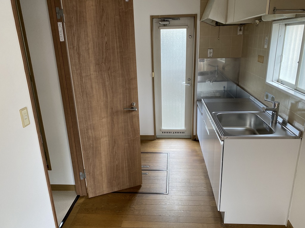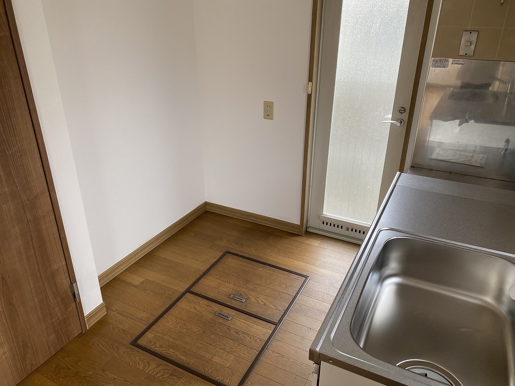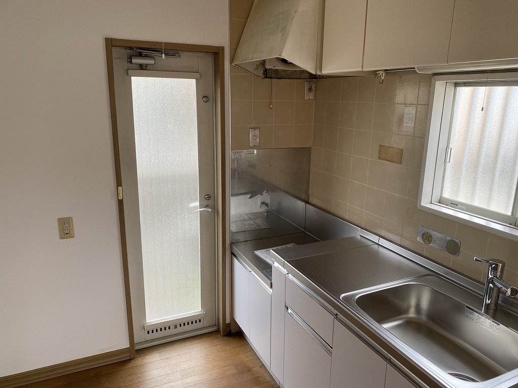 キッチン 収納スペース バス・トイレ別室 エアコン(残置物)3台 雨戸 ガスコンロ可 フローリング プロパンガス 庭 トイレ