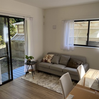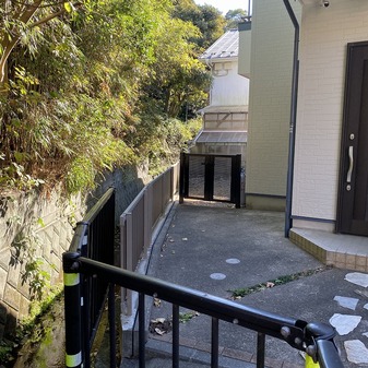 ■稲村ヶ崎駅までは徒歩5分、駅から物件までの道は、ほぼフラットですが、本当に若干の勾配があります。歩いているとほぼ気にならない程度なのですが・・車道と歩道が少し狭いのですが、普通に歩くだけでしたら、特にストレスは無いかと思います。