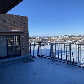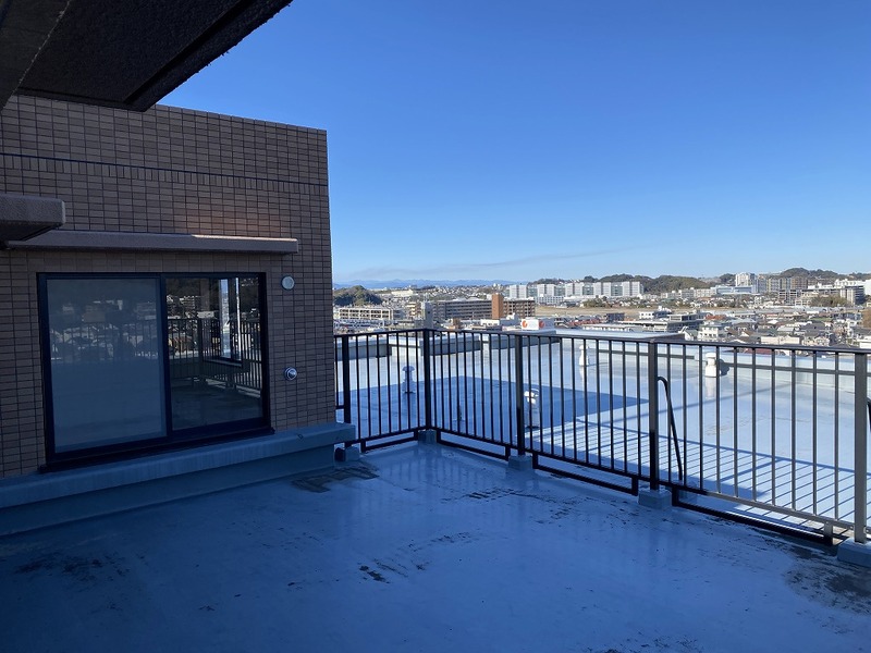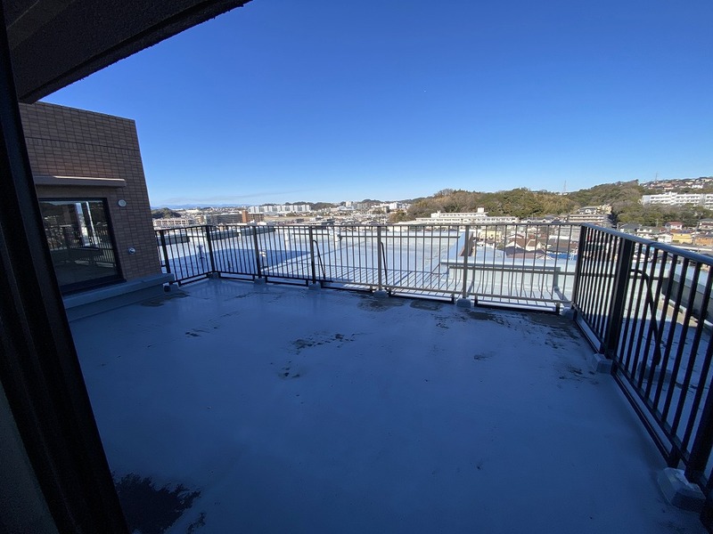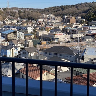 湘南モノレールの湘南深沢駅から降りて徒歩10分の高台に位置するマンションです。もともとマンションの立地が高台ということでしかも、8階建ての8回最上階の角部屋の部屋です